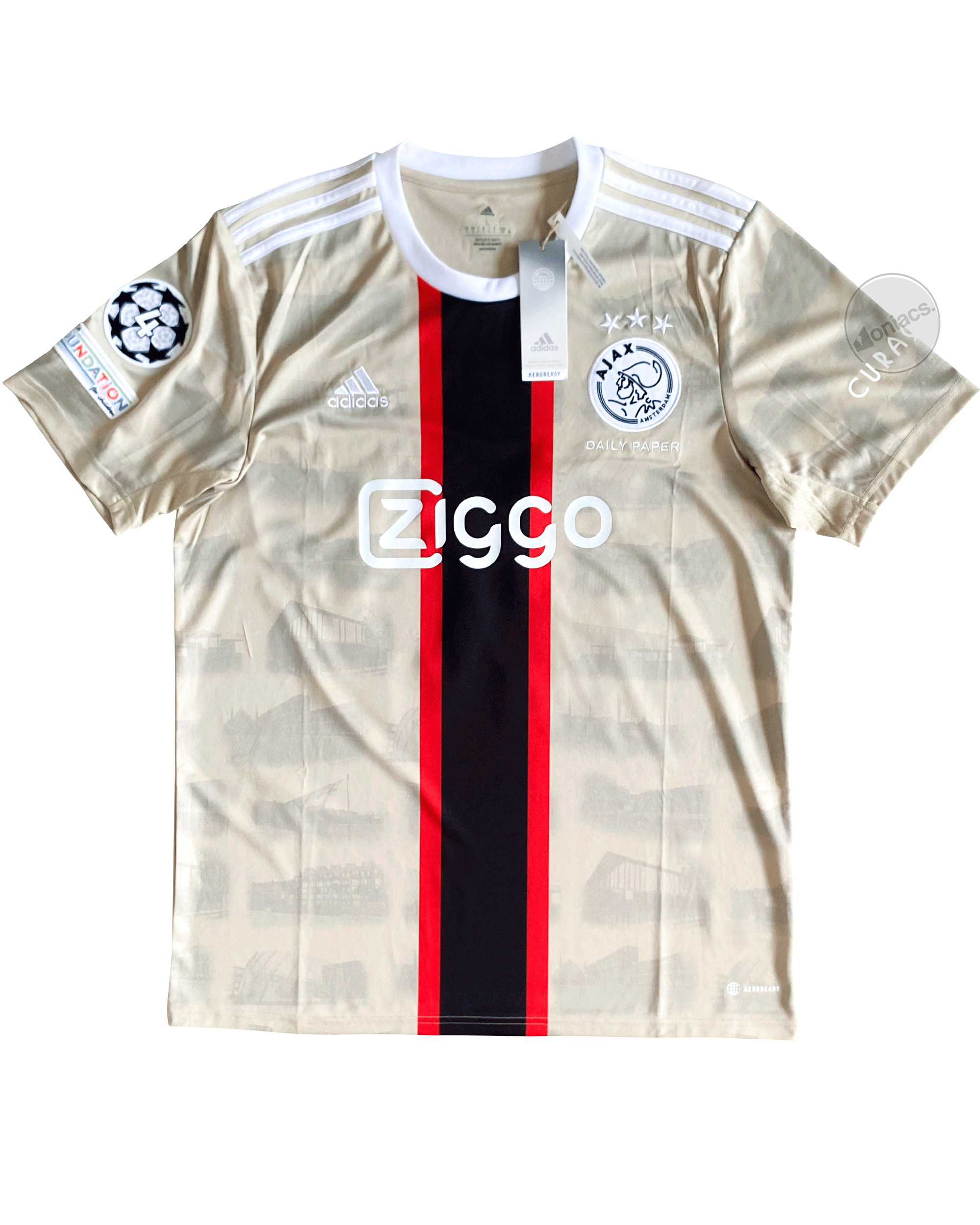 The adidas-manufactured shirt featuring the Ziggo sponsor continues Ajax’s iconic red-and-white design, representing one of Europe’s most historic football clubs.
